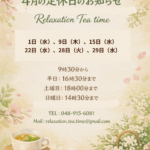 8月のシフト Relaxation Tea time …